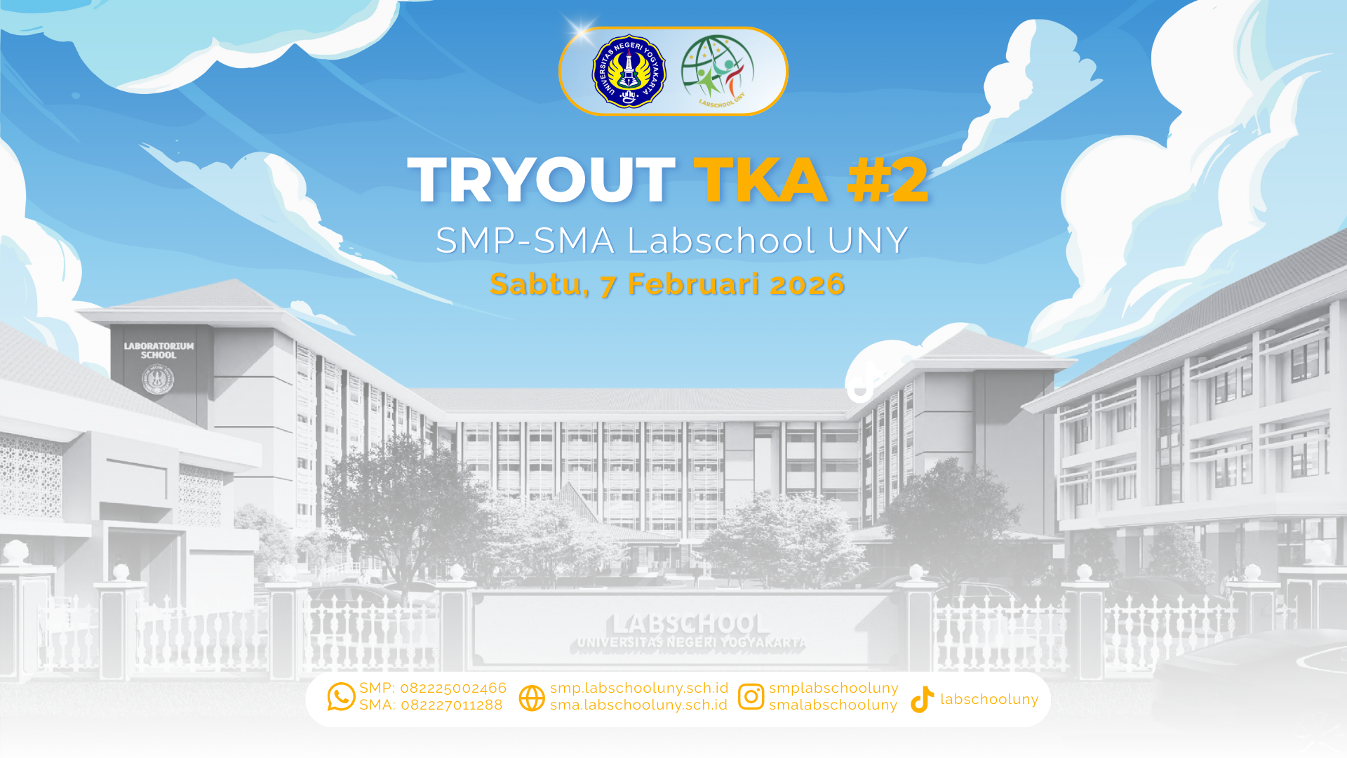 SMP & SMA Labschool UNY mengucapkan terima kasih kepada seluruh peserta yang telah berpartisipasi dalam kegiatan CHALLENGE YOURSELF 2026 – Try Out TKA Online Gratis. Kegiatan ini diselenggarakan sebagai upaya membantu peserta dalam mempersiapkan diri menghadapi Tes Kemampuan Akademik (TKA) serta memetakan capaian kemampuan akademik peserta.